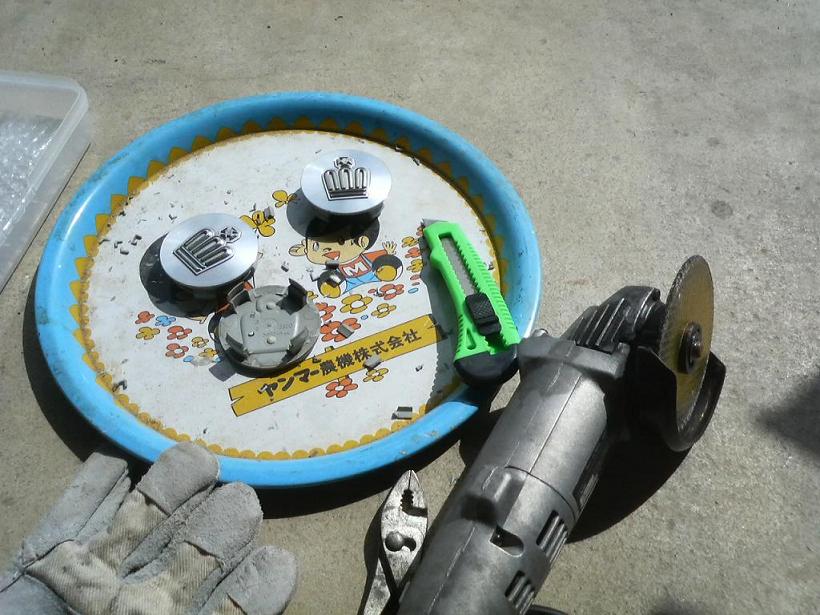 現物合わせで トヨタ純正アルミ用のセンターキャップを加工