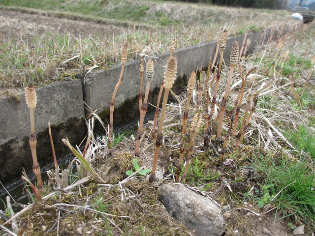 田んぼの畦に土筆がいっぱい