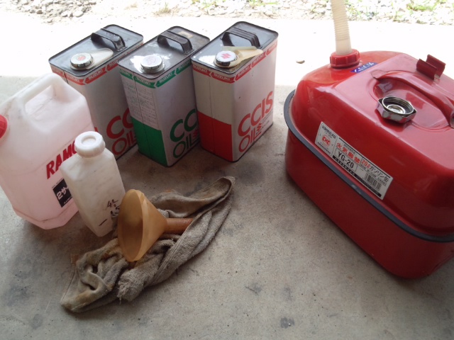 (農機具はほとんど25:1のガソリンとオイルを混ぜた混合油を使用)