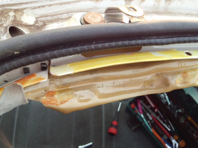 内張りを慎重に剥がします