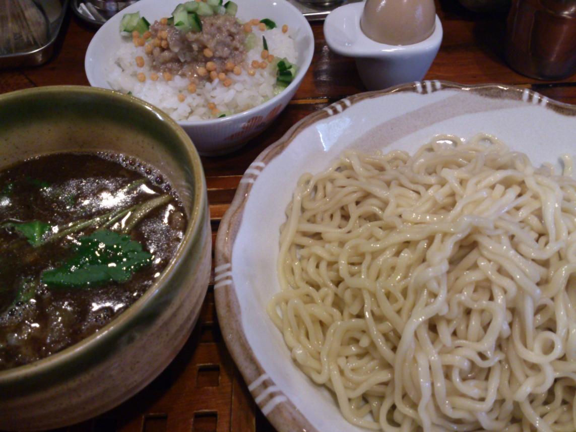 牛スジつけ麺、肉味噌ごはん、アメ玉(煮玉子)