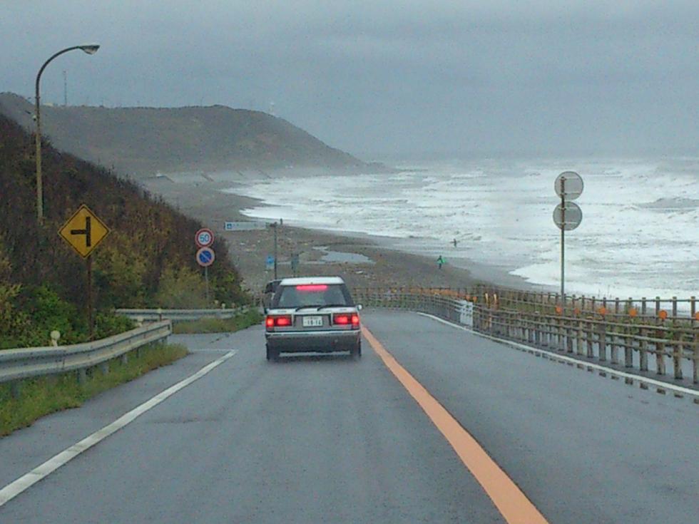 けっこう荒れ気味の海を横目に