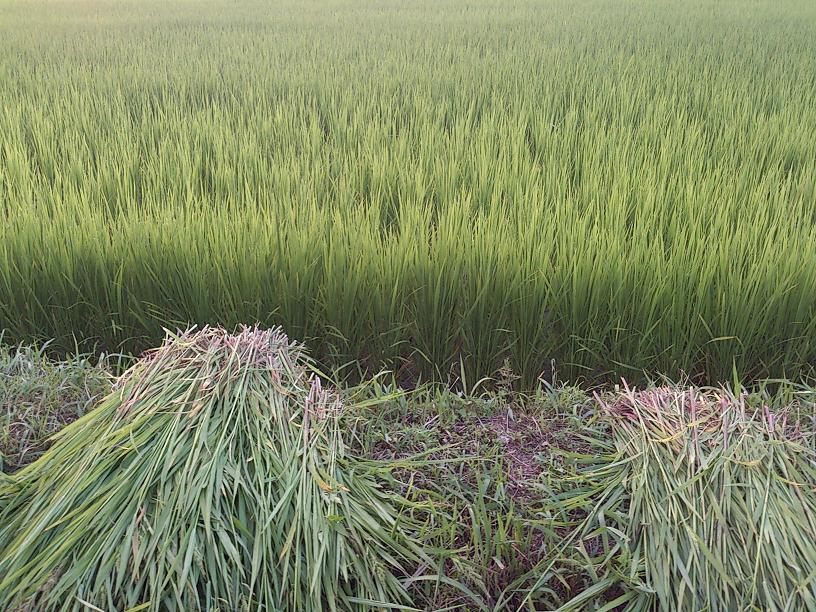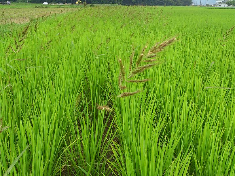 茶屋の田んぼに見事に ヒエ(雑草)が広がってます
