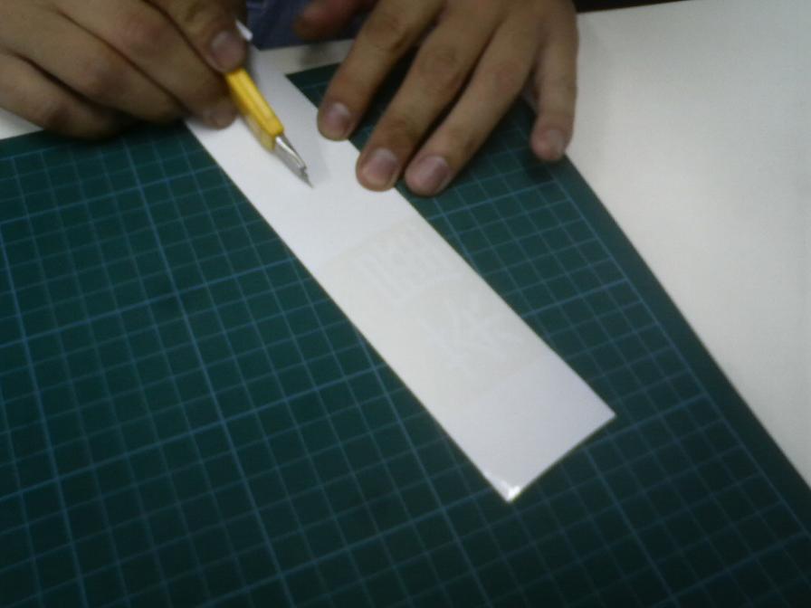 カッティングシートをカッターナイフで 器用に切り抜いて そして完成 茶屋送迎車が走りはじめます OYTの参加者 随時募集中(笑) *カッティングシートの基本作業は あくまでもプロッターによるカットです しかしながらシートから 文字を抜き取るのは手間が掛かる作業です その作業は 職人ワザって・・・