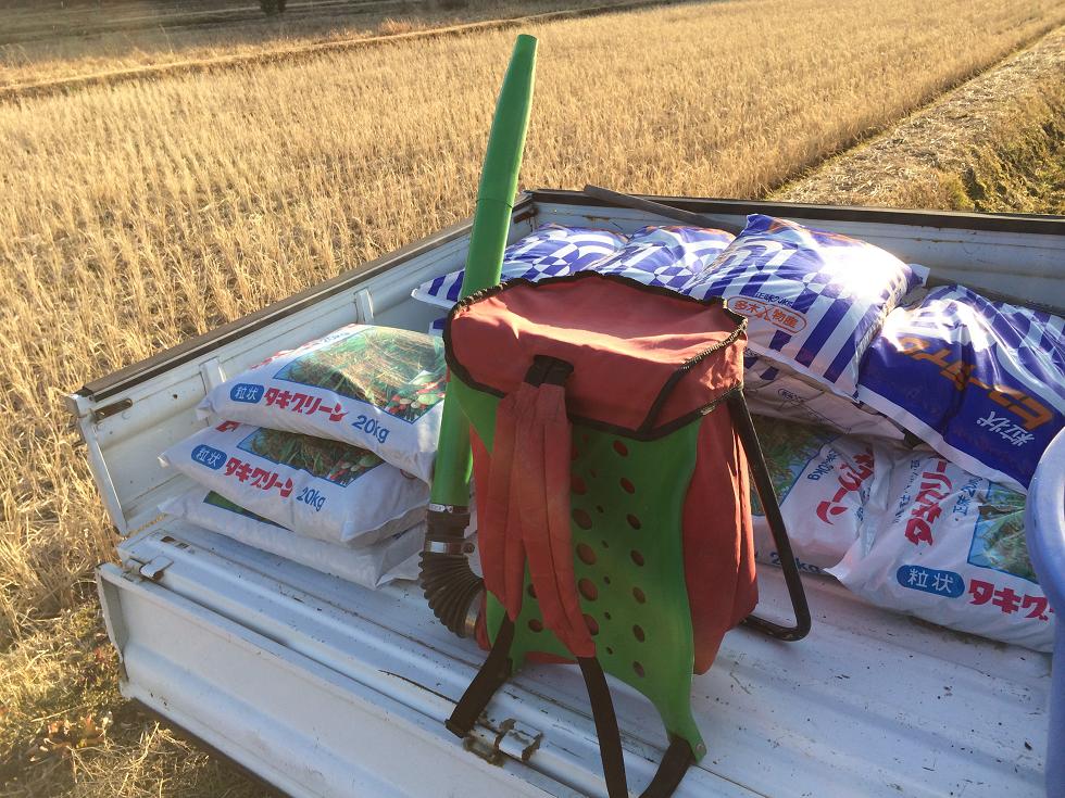 背負いで肥料撒き・・・腰がヤバイかも~~~