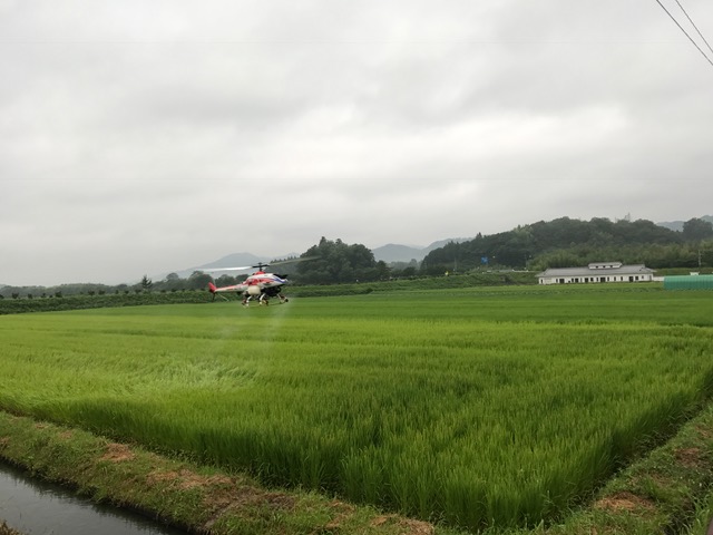 無人ヘリでの 水稲への農薬散布