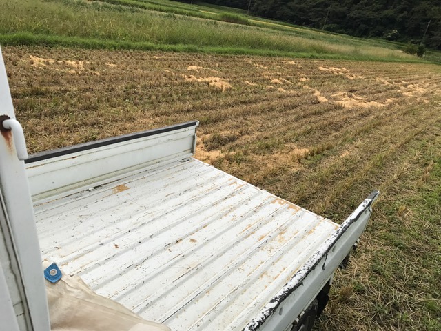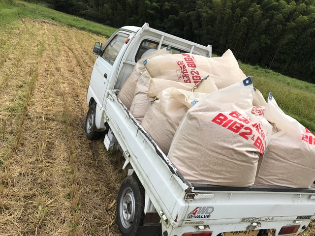 籾殻を田んぼに撒きます