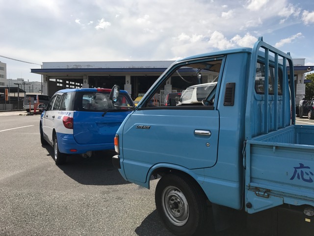 クルマから降りて ウチワを振り回しております