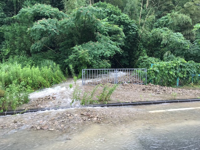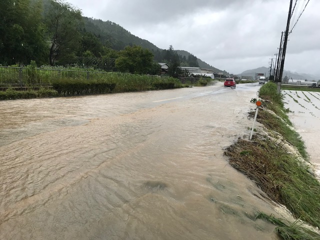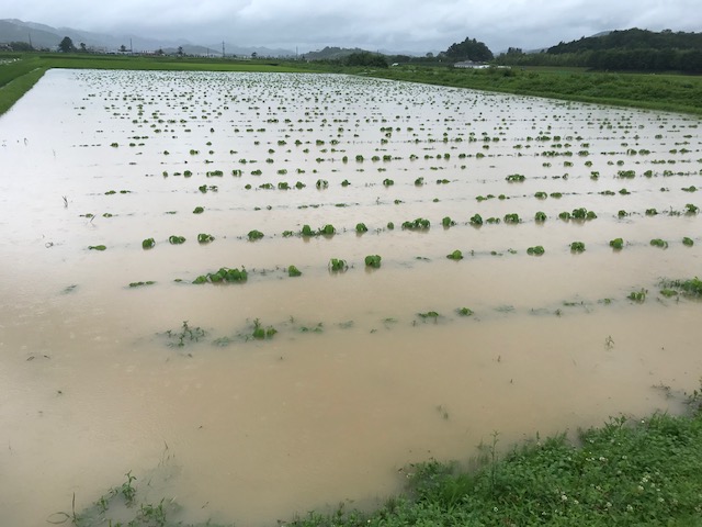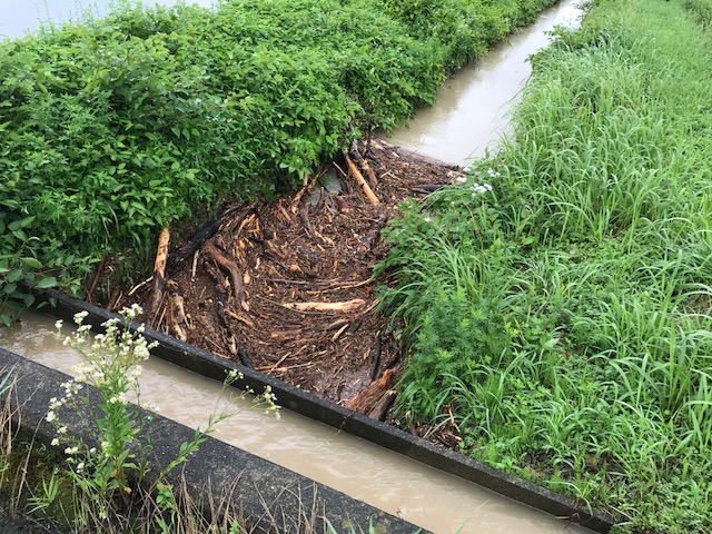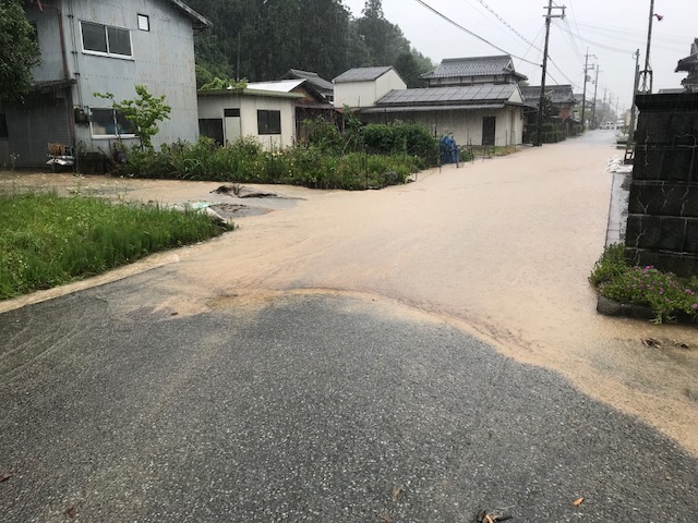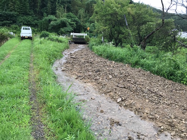 深夜に降った雨のおかげで 朝にはしっかり浸水 毎回 大雨だと恒例になった茶屋の風景 農会の役として村の周辺をパトロール 村の道路には山から流れ出た泥水で 数件に浸水被害が出てます 流木で水路も詰まり コレ水路なんですが 土砂で埋まってます 土砂の為に山からの雨水が道路に溢れて 道路から田畑へ流入してます 黒豆も水没してる場所もあります 田んぼの土手が意味をなしません 水が引けるのを待つしかない状況でした