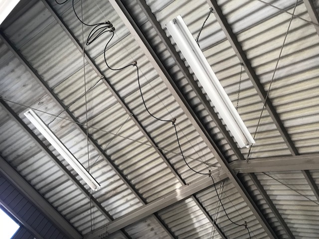 納屋の天井からぶら下がってる蛍光灯