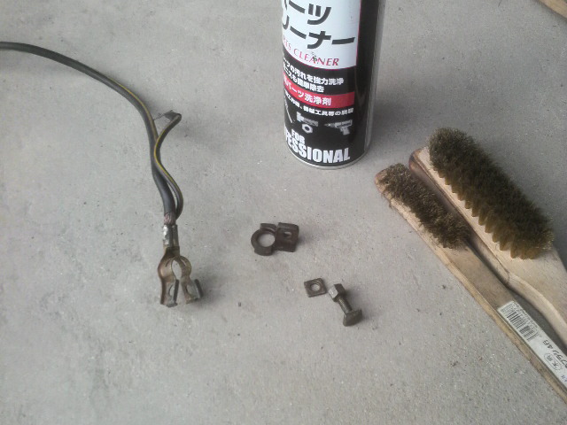 部品車より調達したアース線を掃除して