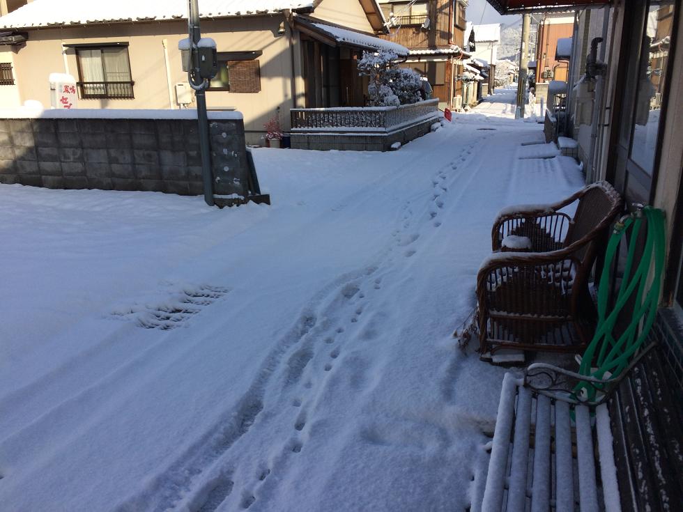 夜が明けると路地裏には雪が積もって