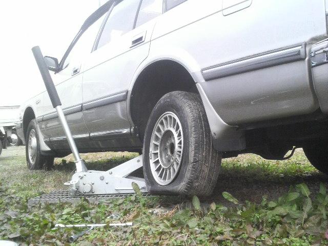 草刈機でカットしたタイヤがペチャンコ・・・