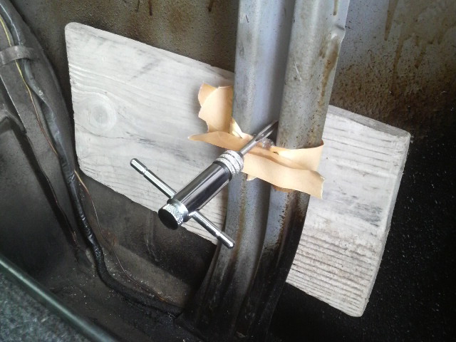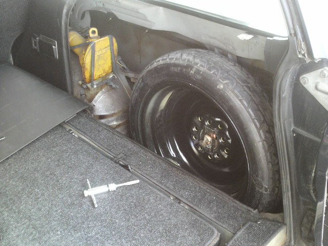 ほんま正月は食べ過ぎです カニ鍋の後の雑炊は甘くて最高ですね 食べすぎでお腹タップタップ 少しはダイエットしゃなきゃ!? スペアタイヤのスペース 標準サイズのタイヤを積んでても めったに出番ってない それで ちょいとドリルで穴あけて タップタップ! テンパータイヤでダイエット。。。