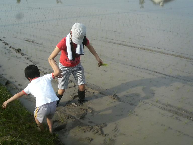 みんな初めての田植えで 足元がアブナイ・・・